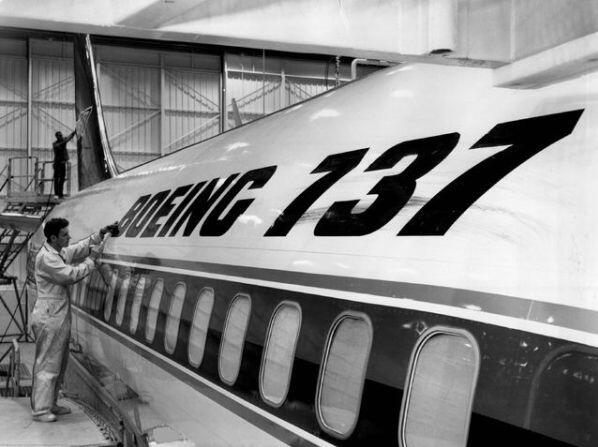 图:1966年11月,首架737进行喷涂 图片来自《西雅图时报》