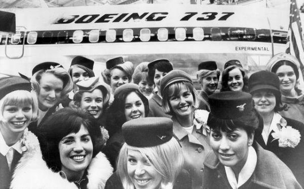 图:1967年1月,17家已经订购了737飞机的航空公司空姐在第一架737飞机前合影。图片来自美联社