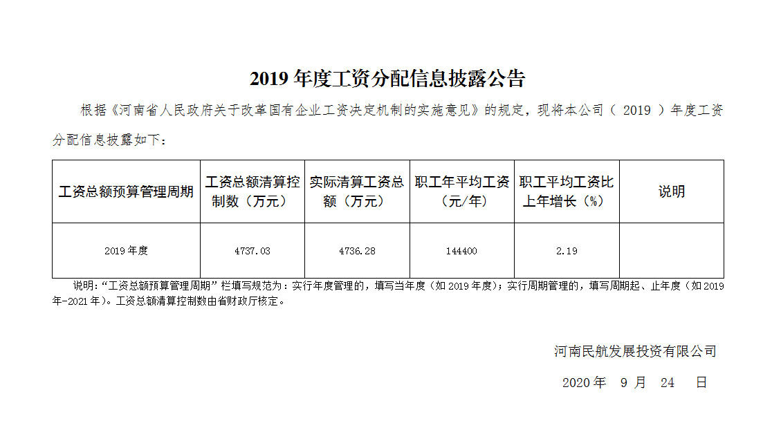 2019年度工资分配信息披露公告